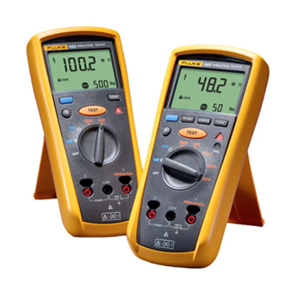 Los comprobadores de aislamiento megometro digital Fluke 1507 y 1503 son compactos, robustos, fiables y fáciles de usar. Gracias a sus múltiples tensiones de prueba, son ideales para diversas aplicaciones de resolución de problemas, puesta en marcha y mantenimiento preventivo. Sus características adicionales, como la sonda remota, ahorran tiempo y dinero al realizar pruebas.